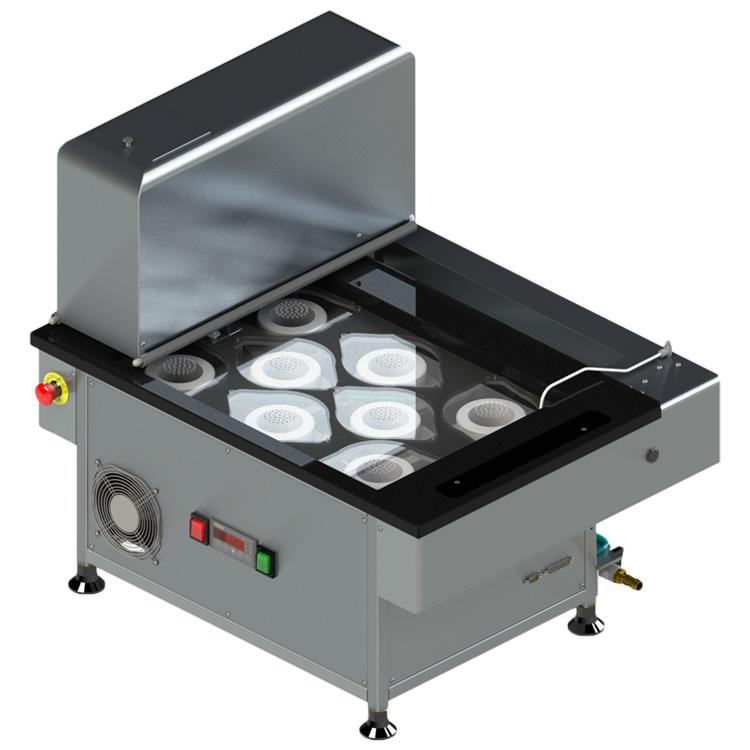 Die Messplätze sind in einer rechteckigen Wanne (4/4/4) angeordnet, welche in einem Edelstahl-Arbeitstisch integriert ist. Der Prüfablauf ist programmierbar. Die Prüfung erfolgt in Luft oder im temperierten Wasserbad (bereits enthalten; inklusive Wärmetauscher und Wasserpumpe für konstante Wassertemperatur). Automatisch erfasst werden Erstarrungsbeginn und -ende sowie Erstarrungskurven. Das Gewicht der Fallstange und der Vicatnadel beträgt zusammen 300 g ± 1 g. Die Vicatnadel wird nach jedem Einstich automatisch durch eine Reinigungsvorrichtung gereinigt.