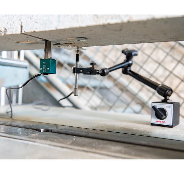 Die Biegeprüfmaschine eignet sich für Biegezugfestigkeitsprüfungen von verschiedensten Stahlfaserbetonen, Betonbalken und Spritzbeton (auch faserbewehrt). Ein Wegmesssystem ist standardmäßig im Zylinder verbaut. Der massive Stahlrahmen ist extrem verwindungssteif, die Säulen sind spielfrei verspannt. Hohe Genauigkeit Klasse 1 nach DIN EN 7500-1 in einem sehr breiten Messbereich.